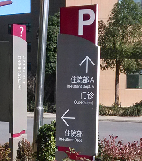 醫(yī)院總是人群爆滿,人們焦急和壓抑的心情讓布滿各個主道輔道的標(biāo)識標(biāo)牌顯得孤獨無助,失去該有的導(dǎo)視作用。醫(yī)院的占地面積通常比較大,如果不是長期在醫(yī)院工作的人員,很難知道路怎么走。所以醫(yī)院導(dǎo)視系統(tǒng)設(shè)計理念不是隨便弄個路牌,要遵循一定的原則。